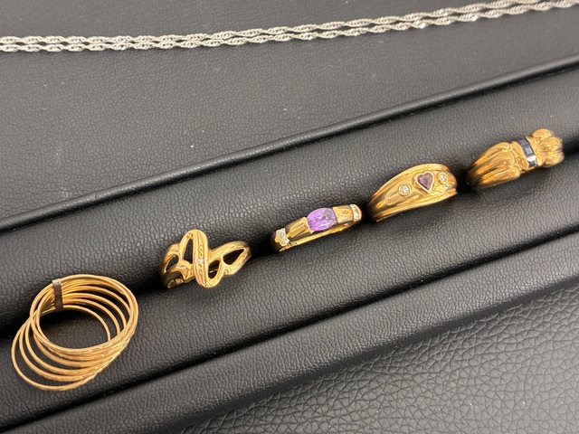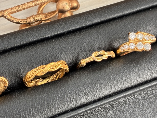 金のリングやダイヤモンド付きリングなどの貴金属をお買取りいたしました。