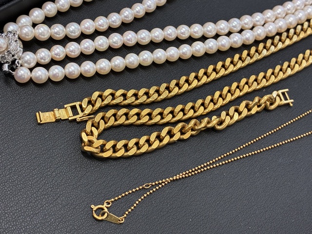 金のネックレスおよびパールネックレスをお買取りいたしました。