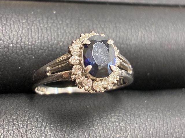 深みのあるサファイアを中心に、周囲にダイヤモンドがあしらわれた上品なデザインのお品物で、素材や宝石の状態を丁寧に確認し、適正に査定させていただきました。