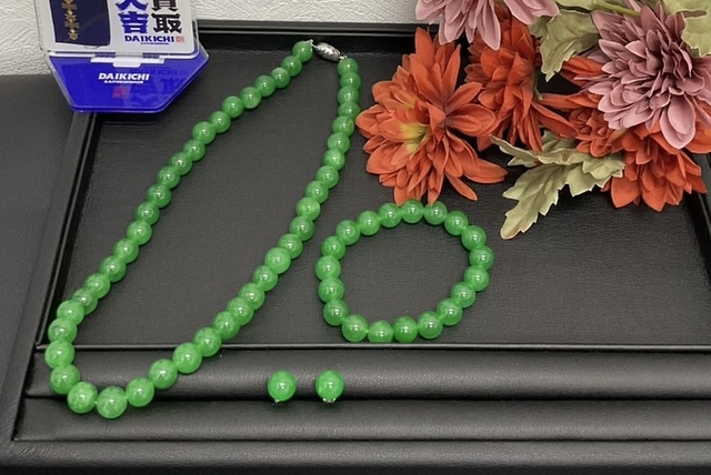大和市代官にお住まいのお客様より、翡翠(ヒスイ)のネックレス・ブレスレット・イヤリングをお買取りいたしました。
