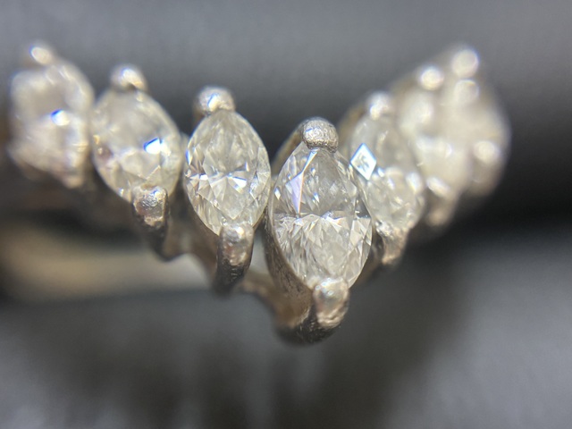 マーキスカットのダイヤモンドが連なる華やかなデザインで、透明感と輝きの美しさが印象的なお品物でした。